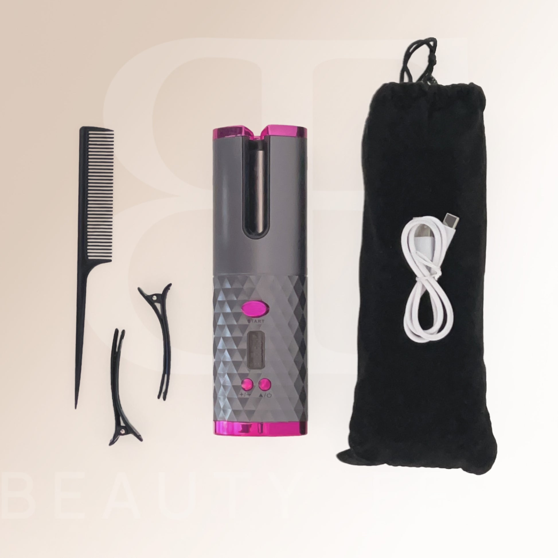 Rizador automático inalámbrico que crea rizos perfectos en segundos. Con batería recargable, control de temperatura y diseño compacto, te permite peinarte fácilmente en cualquier lugar, sin cables ni esfuerzo.